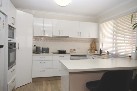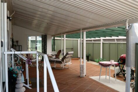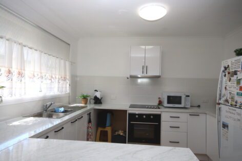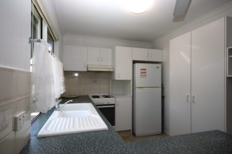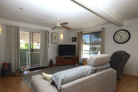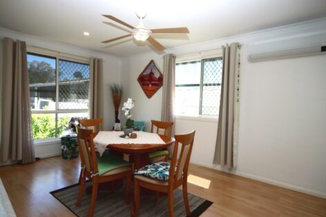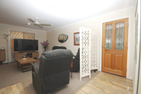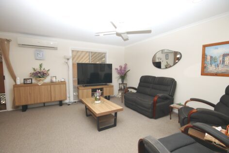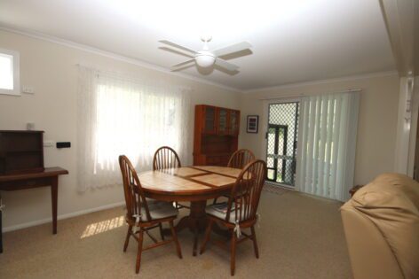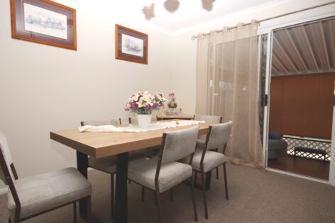 - Extensive open plan living/ dining area with easy access to the delightful outdoor patio and garden area via a glass sliding door. The living area is carpeted and has a split system air conditioner & ceiling fan.