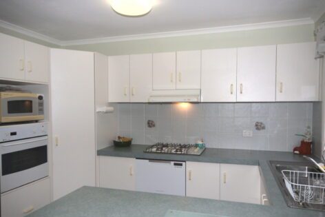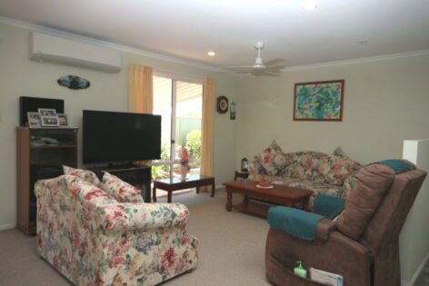 - Extensive open plan living/ dining area with easy access to the delightful outdoor patio and garden area via a glass sliding door. The living area is carpeted and has a split system air conditioner & ceiling fan.