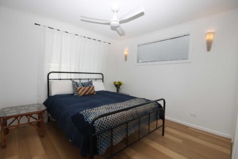 - Located towards the back of the home are two good sized bedrooms with built-in wardrobes and ceiling fans; master bedroom has split system air conditioner.