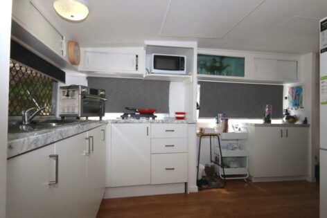 This area includes the tiled floor kitchen with ample cupboard space and a Simpson fan forced oven.