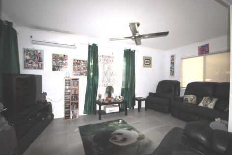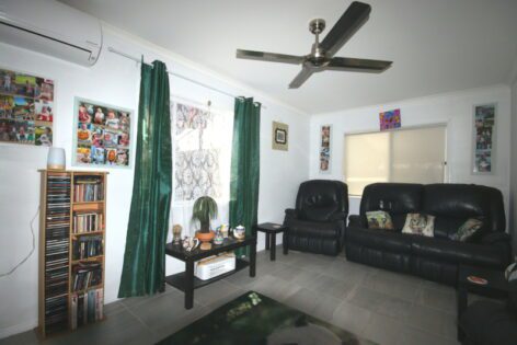 - Open plan living/dining area features split system air conditioner & easy-care vinyl flooring that is carried throughout the home for a very cohesive modern feel.