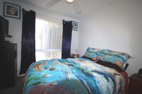 - Located towards the back of the home is the good size bedroom with a stand-alone open wardrobe.