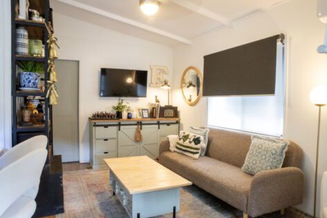 - Generous size open plan tiled living/dining area with raked ceilings, split system air conditioner & ceiling fan.