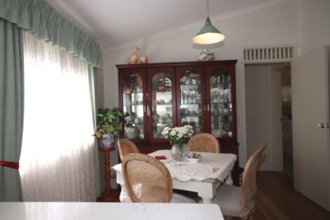 - Open plan living/dining area features raked ceilings, central ceiling fan, split system air conditioner & modern vinyl flooring that is carried throughout the home for a very cohesive feel.