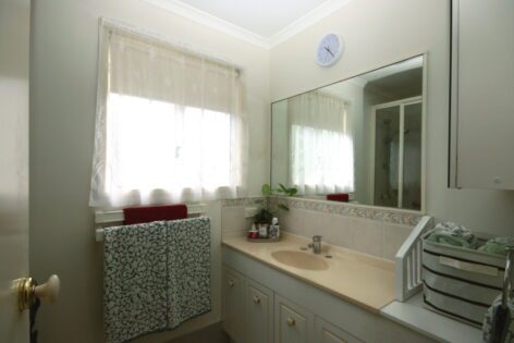 - The bathroom is located centrally and comprises of a glassed-in shower recess, vanity and a separate toilet.
